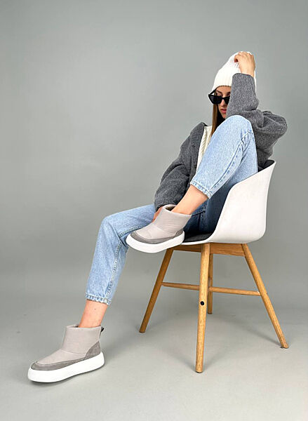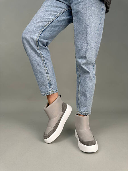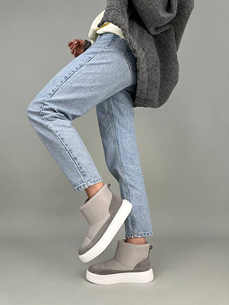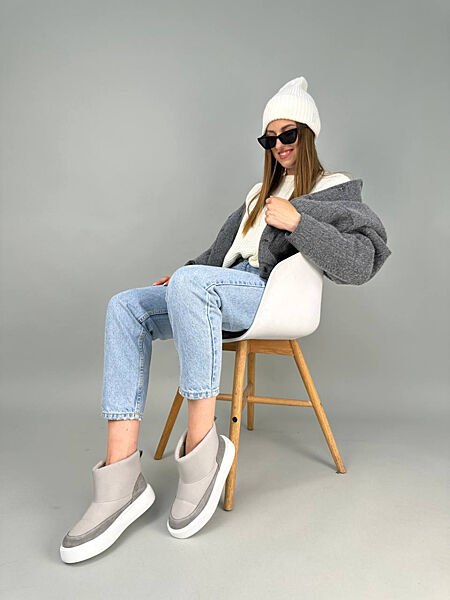 Подробное описание: Уггі жіночі з плащової тканини сірі зі вставками замші