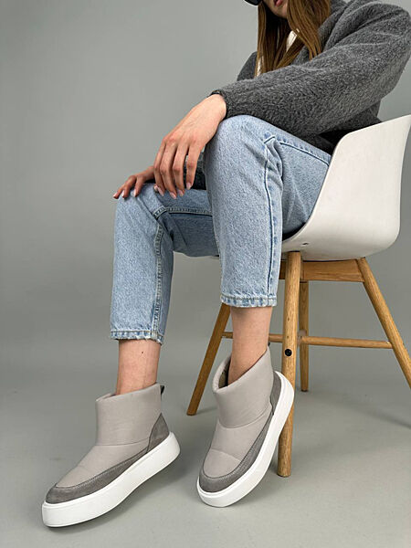 Сезон: зима Розміри: 36-41 Колір: сірий Матеріал верху: плащівка Аргентина Vip + замша Всередині: Airtex Матеріал підошви: поліуретан Обхват вверху: 35см Висота: 9,5см без підошви Висота підошви: 3,5-4см Виробник: Україна 36-23,5 см 37-24 см 38-24,5-25 см 39-25,5 см 40-26 см 41-26,5 см на середню ногу