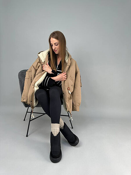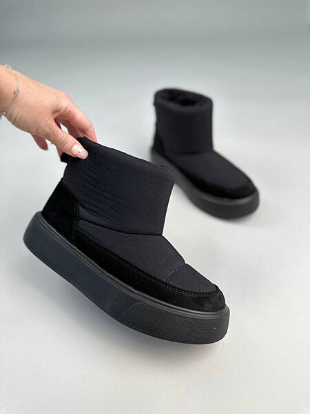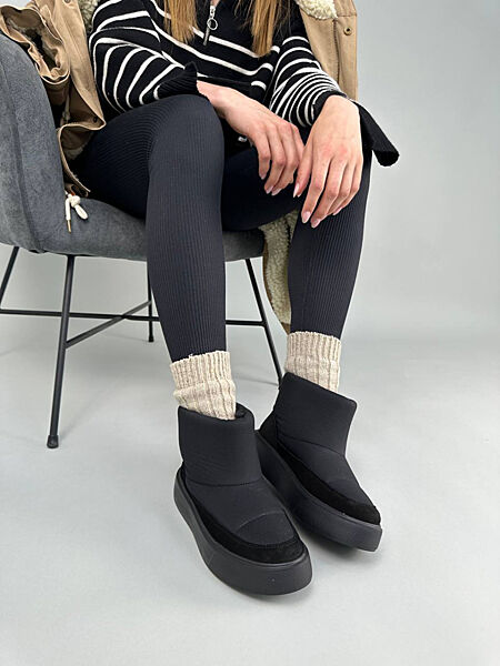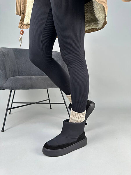Подробное описание: Уггі жіночі з плащової тканини чорні зі вставками замші