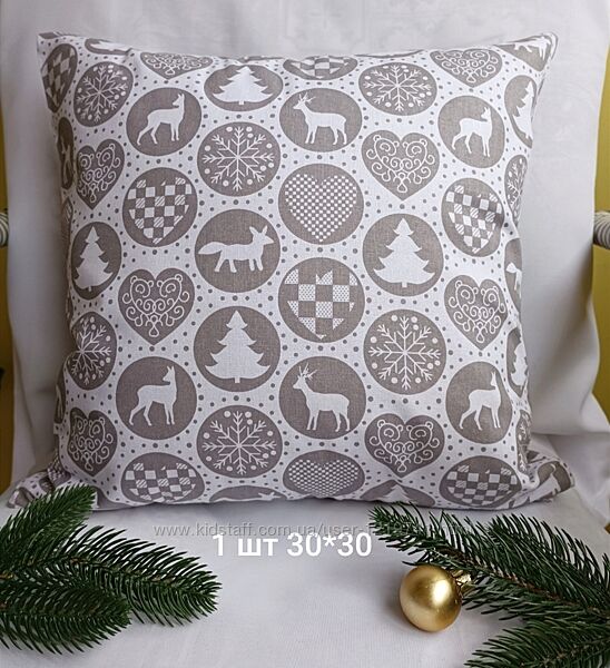 Новые новогодние наволочки ,с ткани 100%хлопок для декора интерьера , также можно спать на этих наволочках, так как они с натуральной ткани хлопокРазмер 30*30 см