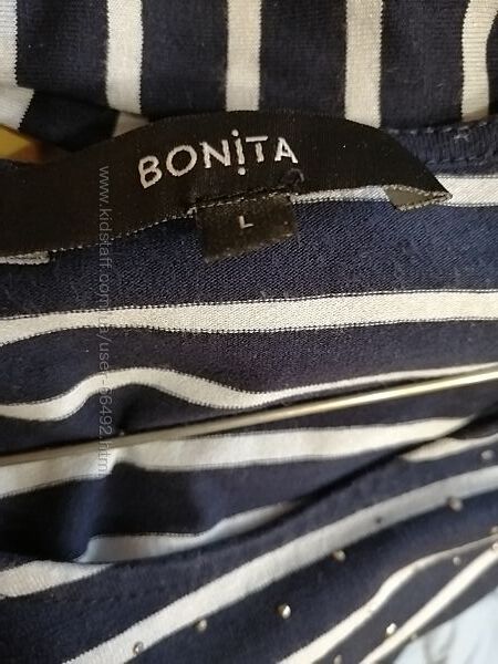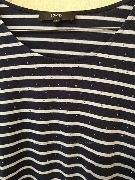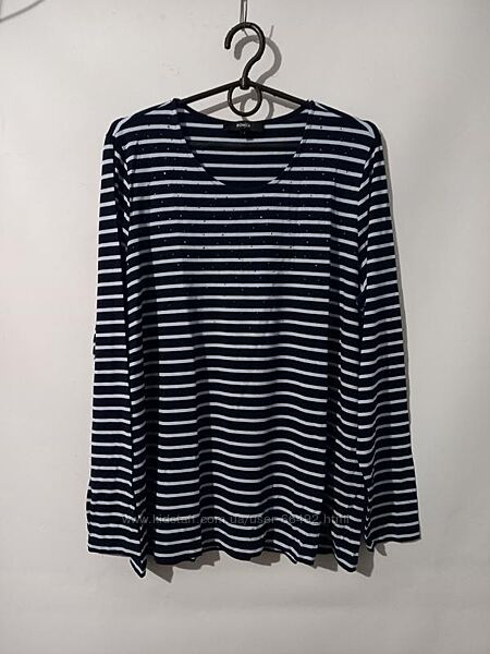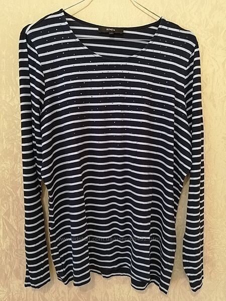 Трикотажний віскозний реглан у смужку бренду Bonita. Стан без недоліків. Розмір L, заміри дам.Сріблясте крихітне оздоблення.