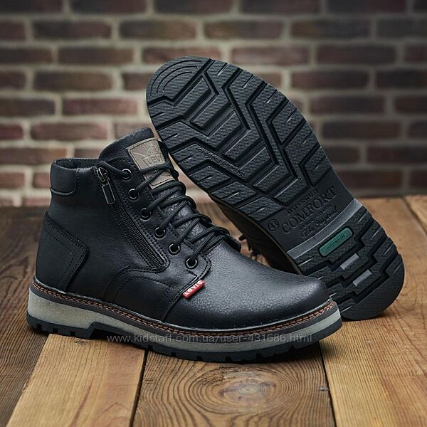 Подробное описание: Чоловічі теплі зимові стильні черевики з натуральної шкіри Levis model-427