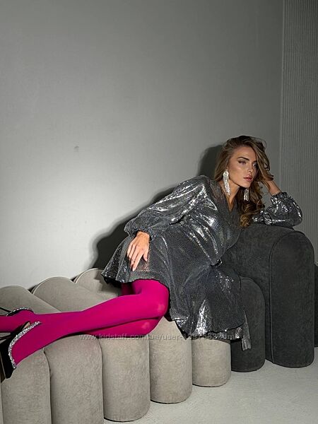 Подробное описание: Вечірня сукня на запах міні блискуча з паєтками з довгим рукавом чорна сіра