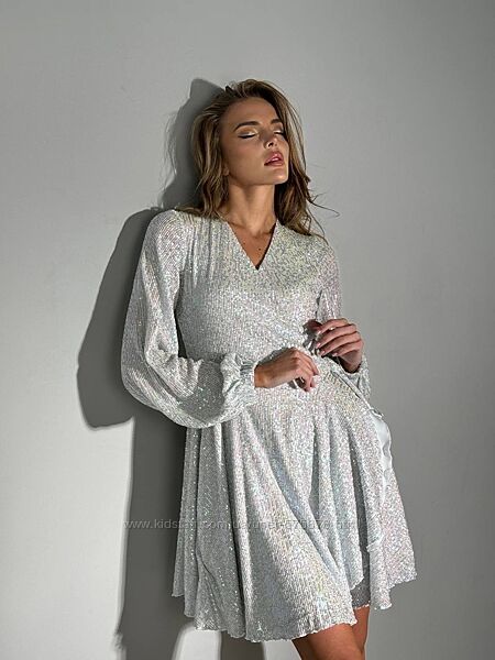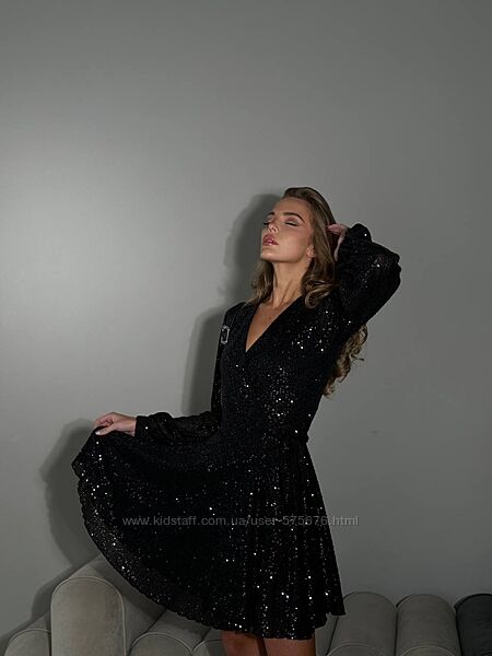 Подробное описание: 40-46 сукня якісна пайєтка на сітці, шовковий підклад сукня на запах