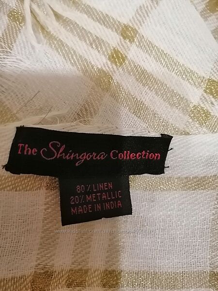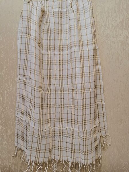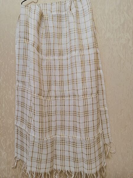 Ошатний лляний палантін преміум бренду Shingora. Стан ідеальний. Мій, майже не використовувала. Склад на фото (льон, металік). Кремовий колір, малюнок у карту, т´мянийненав´ язливий, не кричущій блиск металізованних смужек. Великий розмір 2 м на 72 см.