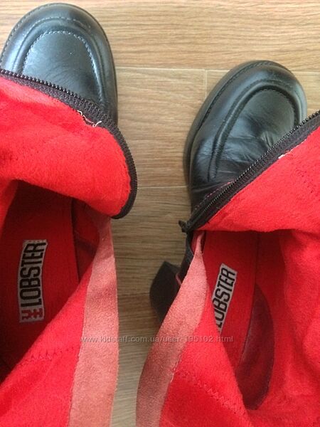 Шкіряні чорно-червоні чоботи LOBSTER широкий каблук 40 натуральна шкіра