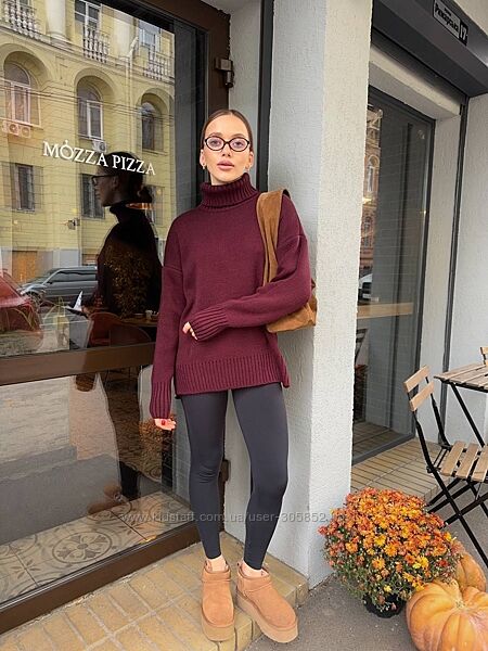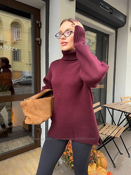 В‘язаний светр зимаТеплий, але легенький. З високою горловиною, манжетами на рукавах і розрізами. Те, що треба, для затишних зимових образів Палітра: молоко, бордо, карамельСклад: 40% вовна, 10% мохер, 50% акрил