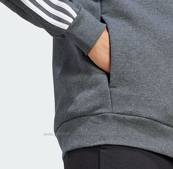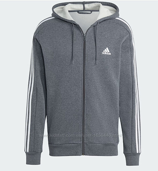 Essentials Fleece 3-Stripes Full-Zip Hoodie Эта толстовка с капюшоном adidas имеет много сдержанной привлекательности. Сделанная из флиса с добавлением хлопка, она сохраняет тепло от головы до рук благодаря регулируемому капюшону и уютному переднему карману. 3 полоски на плечах добавляют классический штрих.