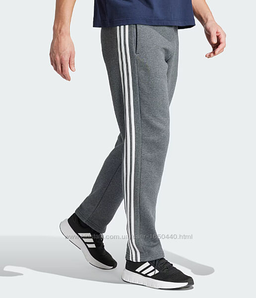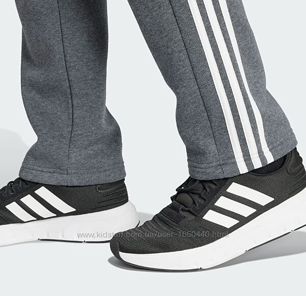 Adidas Essentials Fleece Open Hem 3-Stripes Pants Эти флисовые брюки adidas легко надеваются, чтобы вы могли выйти за дверь с запасом времени и энергии. Сделанные из флиса с добавлением хлопка, они сохраняют тепло, независимо от того, бежите ли вы или двигаетесь в более размеренном темпе. 3 полоски по ногам говорят о вашей гордости за бренд.