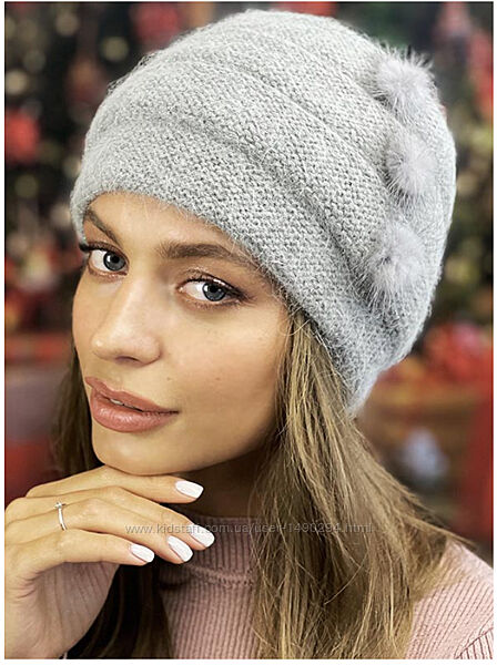 Подробное описание: Шапка вязаная женская теплая серый Харпер