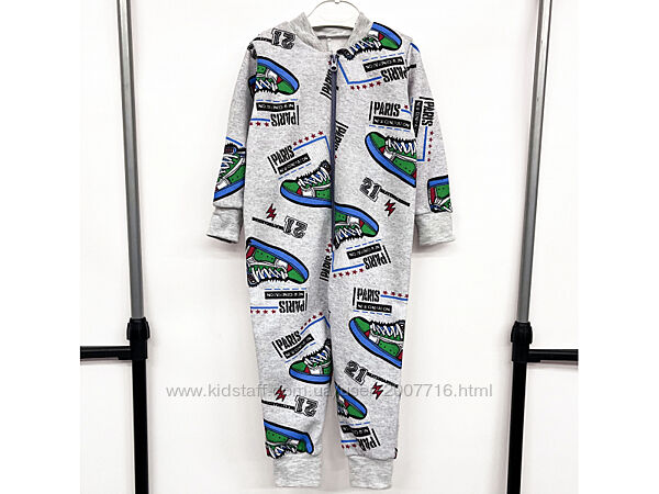 Комбінезон дитячий з довгим рукавом, застібається на блискавці, горловина рукава та низ ніжки на манжеті, відкрита ніжка.Пошитий з теплої хб тканини, є начіс.