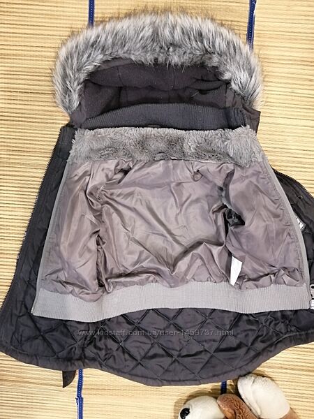 В отличном состоянии. Цвет немного искажен,реальный серый графитовый. Застегивается на молнию и клапан с кнопками. Капюшон не отстегивается, мех отстегивается, внутри капюшона утеплитель. Два кармана на кнопках. В талии пояс, можно вытянуть. В рукавах манжеты, небольшие катышки. Утеплена тонким синтепоном. Спереди чуть короче, сзади полукругом. Верх 91% полиэстер, 9% нейлон. Внутри есть жилетка на молнии, пристегивается на пуговки и кнопку. длина от верней точки плеча спереди/сзади - 46/51 рукав от плеча - 35 (без манжета) рукав от подмышки - 22 (без манжета) ПОГ - 32 ПОТ - 31 длина жилетки - 36 ширина жилетки - 31,5 100% предоплата. Доставка НП, Укрпочта. Оплата за доставку при получении. Без обмена и возврата. О