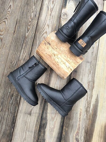 Подробное описание: Угги высокие кожаные ЧЕРНЫЕ со змейкой молнией с внешней стороны ноги UGG
