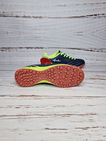 Особливості: підошва з високоякісного зносостійкого гумового з´єднання, розробленого для футболу. Спеціальне розташування шипів значно підвищує стійкість під час ігор, забезпечує відмінне зчеплення навіть на вологих поверхнях, максимально розподіляє навантаження на стопу. Шнурки відмінно фіксують ногу, підійдуть на будь-який підйом.