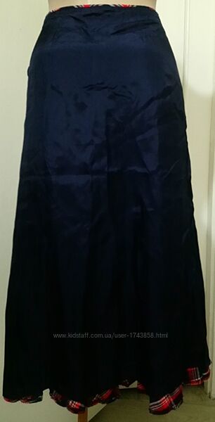 Спідниця р. 44-46 плісирована синя у червоно-білу клітку, на підкладціРозкльошена, застібка-блискавка на лівому боці.