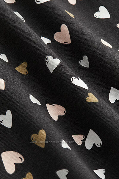 Чорний лонгслів H&M у сердечко для дівчинки6-8