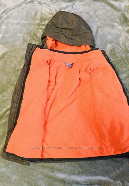 8-10 рок. Дві лижні куртки по ціні однієї! відомого бренду Champion (США) модного кольору Хаккі, з яскравою помаранчевою підкладкою- зимова куртка - трансформер 2 в 1 (з флісовою курткою, яка пристібається на блискавках, і її можна відстебнути); внутрішню куртку можна носити окремо навесні та восени!
