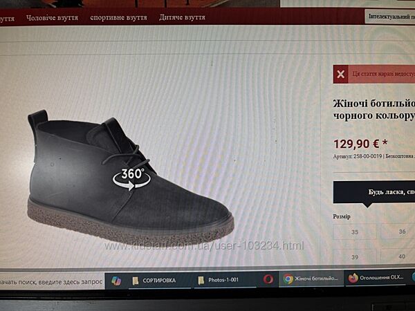 Подробное описание: Ecco Crepetray черевики р.38 устілка 24,5см