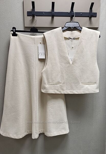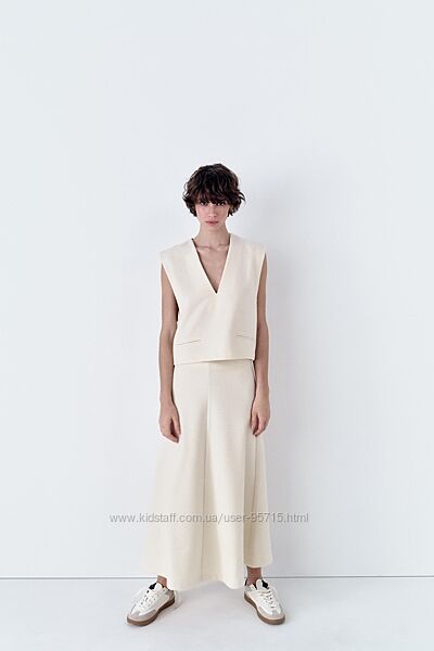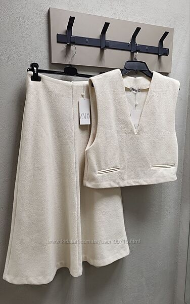 Подробное описание: Костюм, комплект спідниця міді та жилет від Zara - M - Екрю