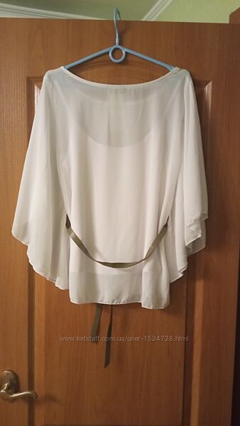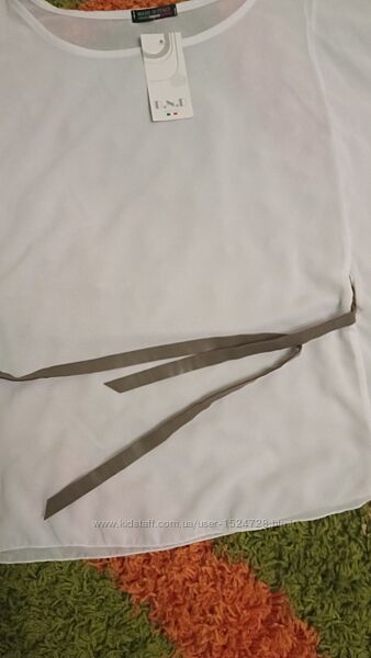 Шифонова біла блузка. Виробництво Італія. Довжина 64 см,довжина рукава 34 см, ПОГ-42 см, плечі 38 см.Делівері повна передплата товару, Нова пошта передоплата доставки в дві сторони, укрпошта, передоплата суми доставки. Доставка за рахунок покупця. Якщо товар з якихось причин не підійшов, можливий обмін на мої лоти.