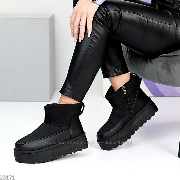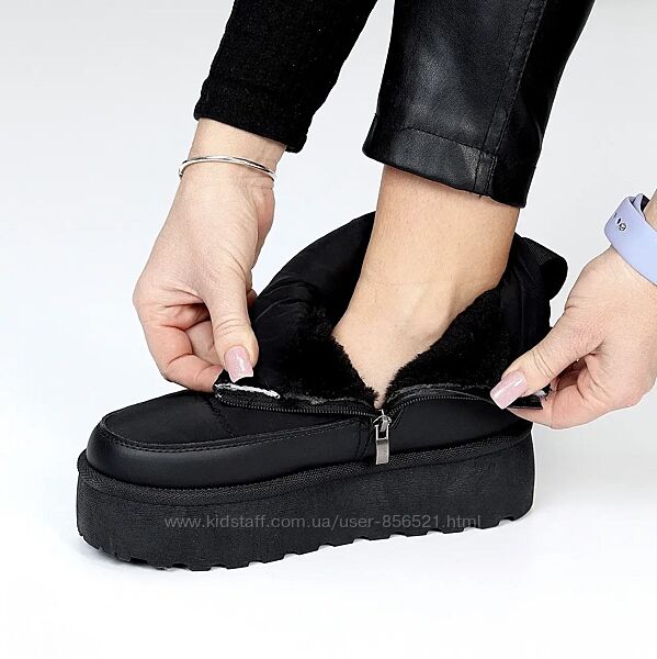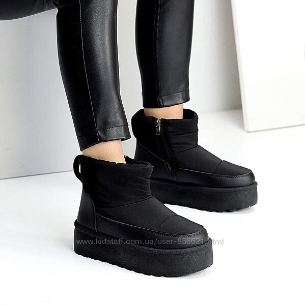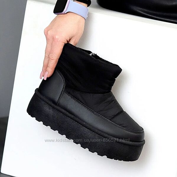 Подробное описание: Уггі дутики Чорні із змійкою на високій платформі вологозахисні жіночі зима