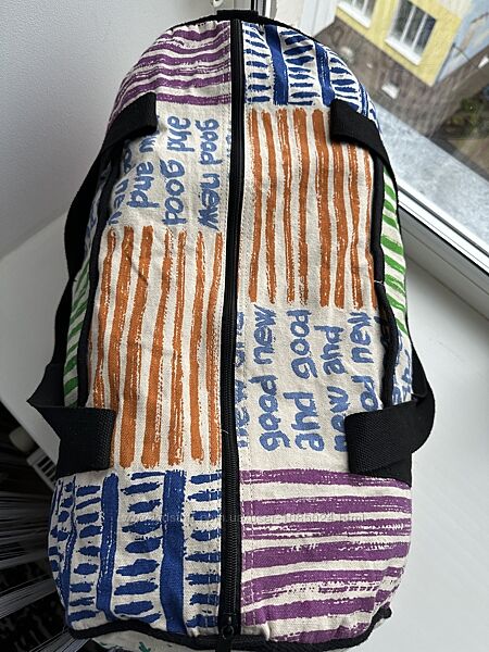 З одного боку ззовні дві кишені, з другого одне велике відділення