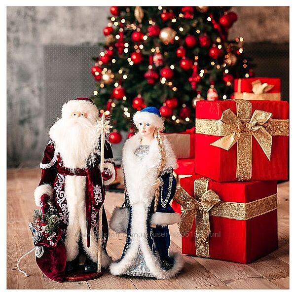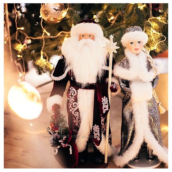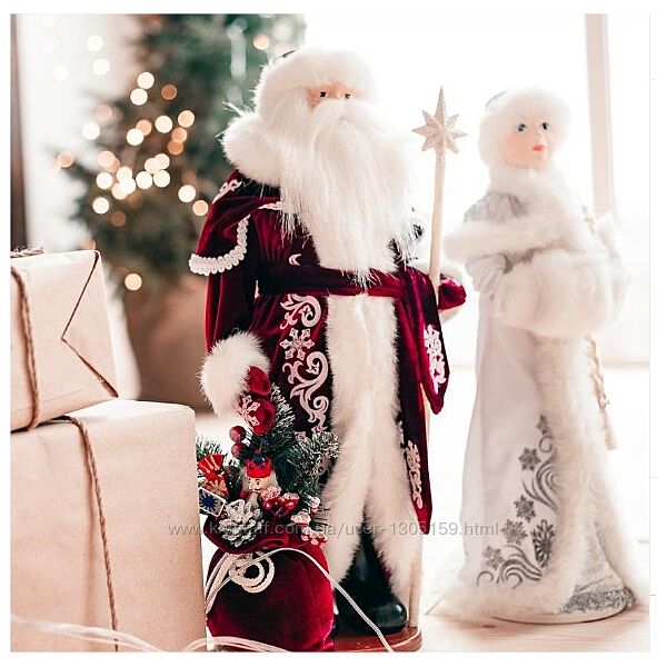 Дед Мороз в бордовой шубе с белым узором - это идеальный подарок для тех, кто хочет создать праздничную атмосферу в своем доме. Он станет украшением интерьера и подарит радость и улыбки всем, кто его увидит.