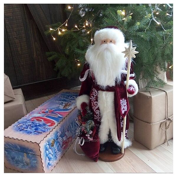 Подробное описание: Дед Мороз 53 см в бордовой велюровой шубе