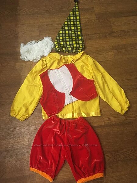 Складається- з велюрових штанців, жилетки. Атласної сорочки.Ковпака та бороди