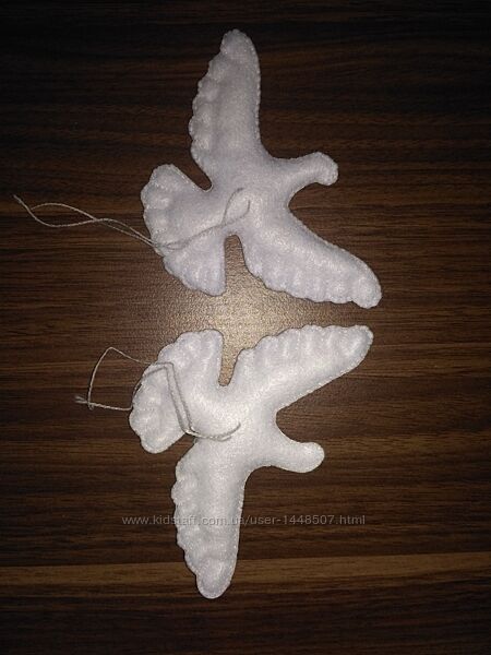 Фетровые игрушки на ёлку в виде голубей, размер игрушки до 10 см, наполнение - синтепух, ручная работа.Оплата на карту, отправляю Укрпочтой или Новой почтой.