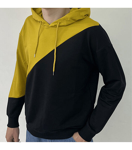 Мега зручне чоловіче худі oversize – ідеальна річ не тільки для шанувальників спортивного стилю. Модель пошита із трикотажу двонитки преміум якості, з манжетами на довгих рукавах та внизу виробу.Кругла горловина переходить у великий зручний капюшон із зав’язками, пройми опущені. Родзинкою худі є те, що модель скомбінована з двох кольорів тканини. Таке дизайнерське рішення додає моделі оригінальності та лоску.