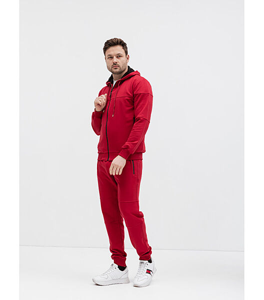 З таким спортивним чоловічим костюмом легкість та комфорт на прогулянках чи під час занять спортом тобі будуть забезпечені. У комплекті спортивні штани йдуть на резинці вгорі та внизу, зі зручними кишенями спереду вгорі.Крім того, вони мають застібки, що додає їм ще більшої функціональності та комфорту. У худі каптур доповнений підкладкою з основного матеріалу, а прямий низ та довгі рукави закінчуються манжетами в тон. Для більшого комфорту у кофті спереду вшита функціональна блискавка по всій довжині. Зручний фасон та лаконічний дизайн роблять цей трикотажний костюм чудовою базовою річчю для чоловічого гардеробу.