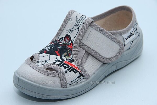 Тапочки Waldi 0277 сірі Мото Супінатор. Шкіряна устілка. Матеріал: верх - текстиль, всередині - текстиль. Заміри устілок: 25-(15.8 см) 26-(16.4 см) 27-(17.0 см) 28-(17.7 см) 29-(18.3 см) 30-(19.0 см) Великий вибір дитячого взуття в нашому магазині.