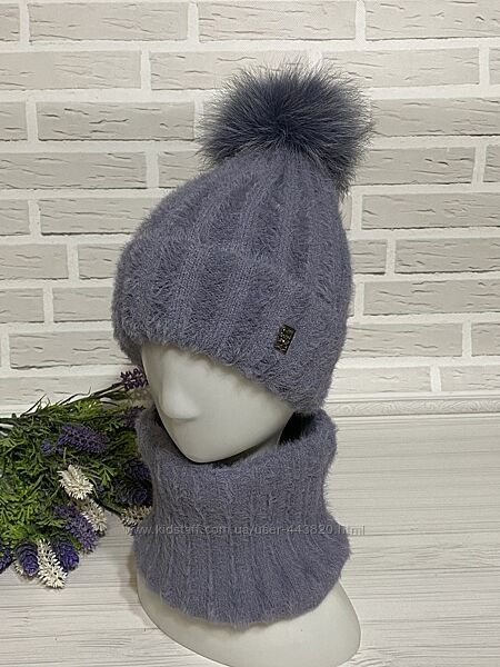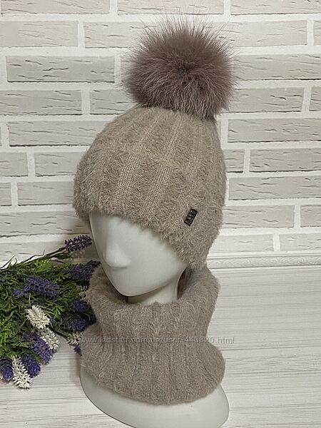 Зимовий комплект шапка хомут на повному флісі.Склад: 50% вовна, 50% поліестер