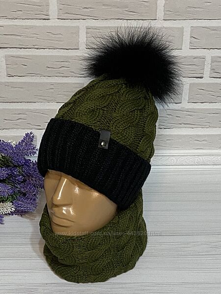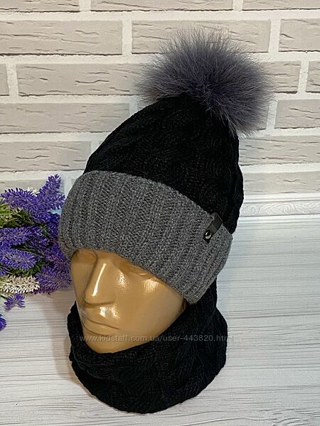 Набір шапка та снуд на повному флісі.Помпон - натуральне хутро хвостова частина.