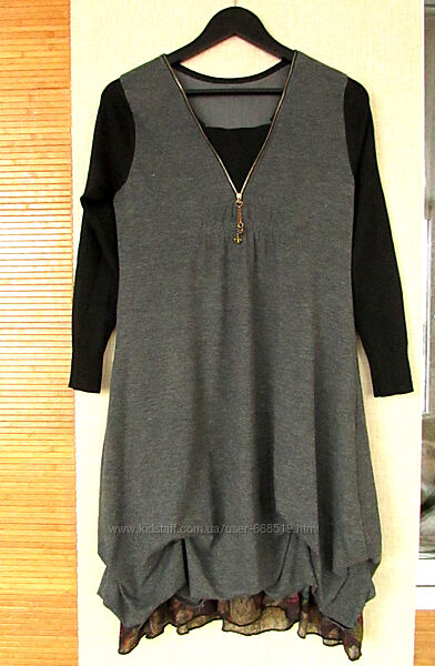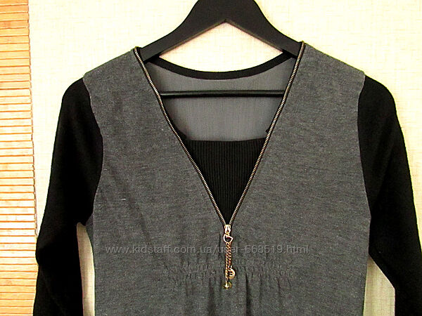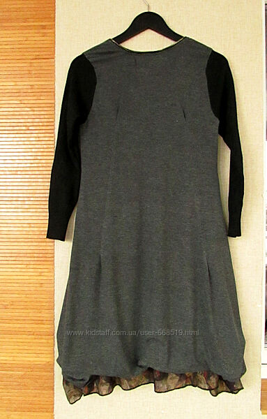 Подробное описание: Стильне темно-сіре плаття з чорними трикотажними вставками, сукня 46 розмір