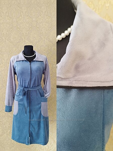 Подробное описание: Жіночий велюровий халат на замку з карманами і поясом