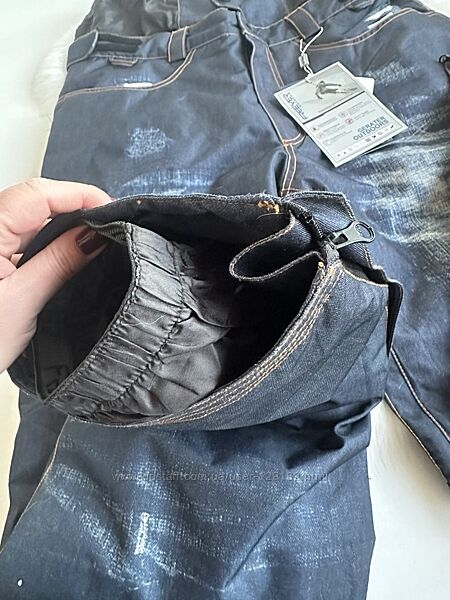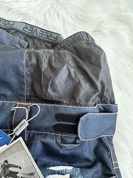 Розмір - XXL Довжина 112, крок 78, напівобхват талії 52, напіобхват бедер 61 см. По талії регулюється липучкою, можна робити менше, також є манжети для ременя. Модель з унікальним кольором "під джинс", верхній захист попереку відстібається і виходить просто утеплені штани. Мембрана, водонепронекність 15000мм водяного стовпа, утеплювач- поліефірне волокно 80 г\м, дихаюча здатність 15000 г\м\24г Гірськолижні штани чоловічі Freever створені для лиж, сноуборду та інших видів активного зимового відпочинку. Виготовлені з непромокаючої і не продувається мембранної тканини, яка добре відводить зайве тепло тіла назовні. Завдяки високій еластичності матеріалу і артикуляційному кроєм колін вам доступна абсолютна свобода рухів. Всі шви проклеєні зсередини. Використовуються якісні водонепроникні блискавки для кишень і додаткової системи вентиляції, що розташована на внутрішній стороні стегон. Пояс регулюється в обсязі, є петлі для ременя і зйомний захист попереку. Внутрішні манжети на резинці добре захищають від попадання снігу, а зовнішні, регульовані на блискавках дозволяють зручно одягати штани поверх лижного взуття. Рекомендації з догляду: делікатне прання за температури не вище 30° гелеподібними засобами для кольорових тканин у разі локального забруднення попередньо можна використовувати рідкий засіб для виведення плям без вмісту хлору, віджимання на низьких обертах, не сушити в сушильній машині.
