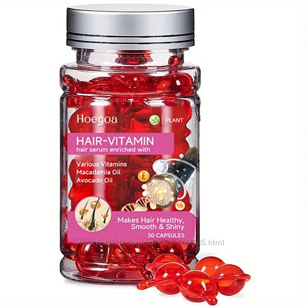 Сыворотка для волос с витаминами для волос с маслами арганы, макадамии и авокадо - Увлажняющий уход за волосами для нормальных волос - С витаминами A, C, E и Pro B5 для блестящих, гладких волос - 30 капсул