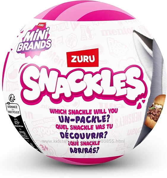 Snackles — це суперм’який, ультра стискаючий плюш, який поставляється в поєднанні з вашими улюбленими міні-брендами! Кожен Snackle постачається з коміксом про походження та наклейками. Не залишайтеся голодними, ви можете зібрати 14 маленьких снеків! Ви знайдете Harribo Goldbear або Subway Husky? Шукайте свою улюблену смачну пару зі Snackles!