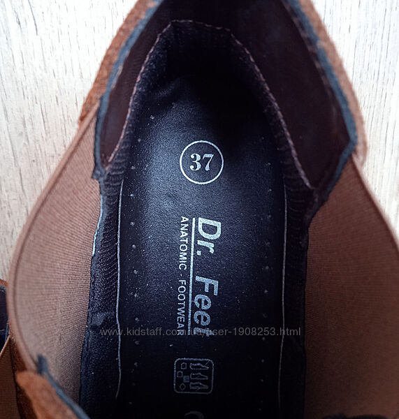 Бренд: Dr. Feet.Особливості моделі: європейський виробник, натуральна замша зовні і натуральна шкіра всередині, дуже легенькі, утеплені, сідають на ніжці як влиті, зручно вдягати завдяки гумовим вставкам, мають заводську прошивку периметра підошви. Нові (сток).