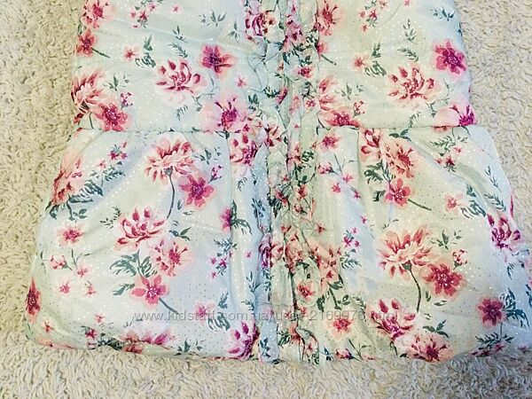 122-128 зріст. Демі жилет. Застібка - блискавка, з захистом при закриванні, верх жилетки зі срібним напиленням, яскравий квітковий принтЗверху м"яка плащівка- вітронепродувний матеріал. Наповнювач - синтепон.