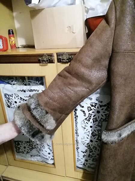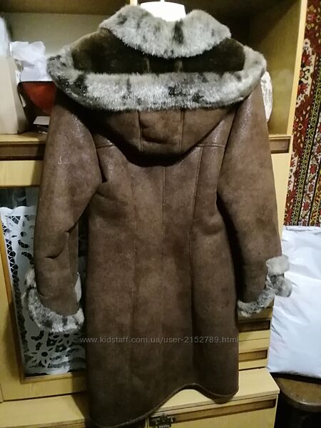 Дублёнка женская из съемным капюшоном, очень модного покроя. На теле стильно смотрится! Теплая и удобная.Состояние идеальное, без пятен и дыр. Размер 48