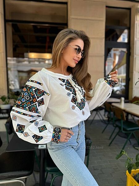 Подробное описание: Жіноча вишиванка літня сучасна мережка блуза вишита сорочка біла