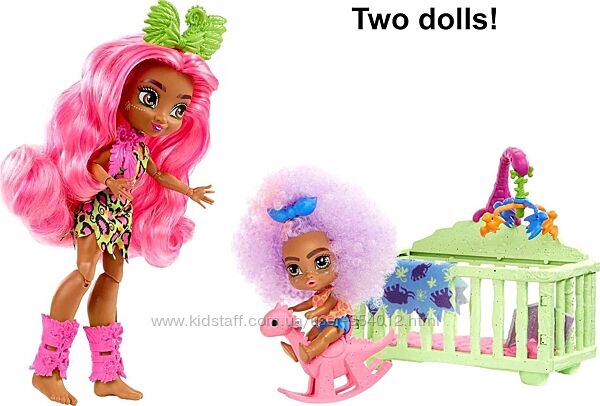 Ігровий набір Cave Club Tot Sitting Adventure Babysitting Playset з лялькою Fernessa та лялькою-малюком Farrah , а також аксесуарами - абсолютно новий набір, у коробці, 100% оригінал Mattel. Набір куплений та привезений з США.З ляльками та ігровими наборами Cave Club діти зможуть подорожувати у часі та відкривати для себе епічні пригоди зі своїми улюбленими доісторичними персонажами, такими як Фернесса, перша няня!