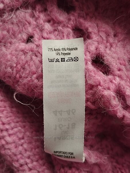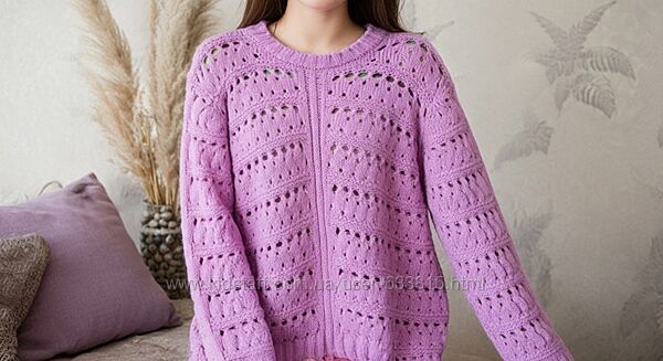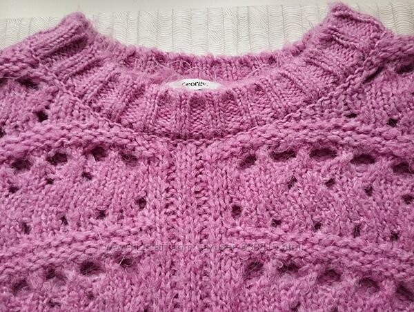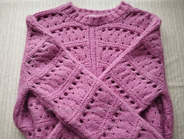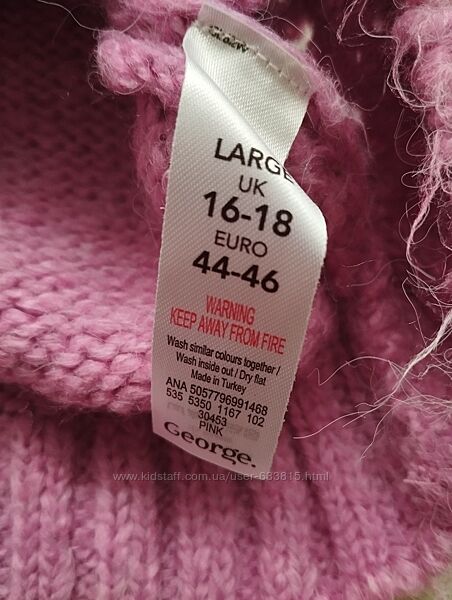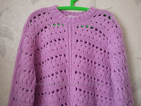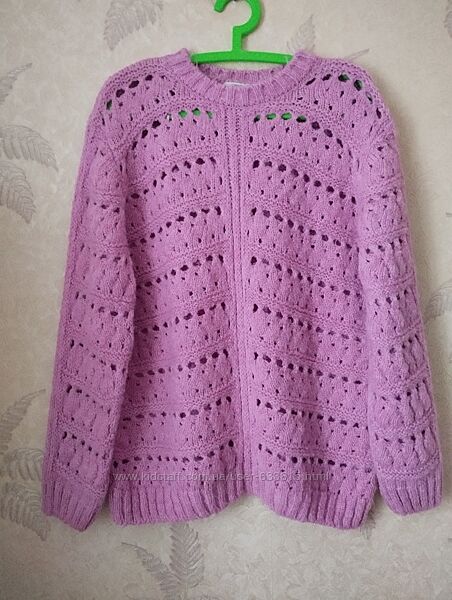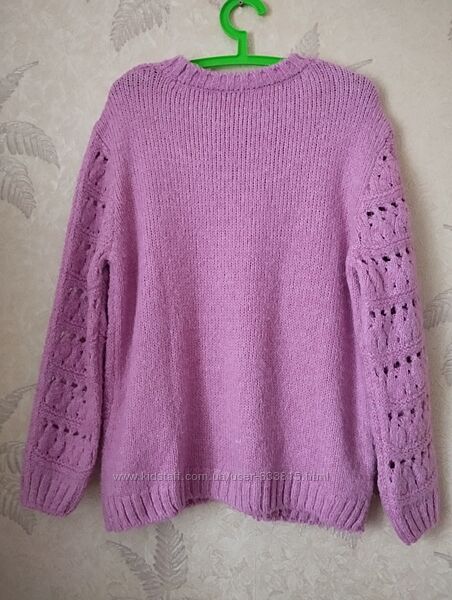 Размер 16/18. Замеры: плечи 50см пог 56см поб 57см длина 65см рукав 61см. Мягкий, приятный к телу. В идеале. Только на спине внизу фабричное вплетение нити другого цвета(фото).
