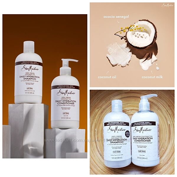 Подробное описание: Набір Sheamoisture, 100 Virgin Coconut Oil, шампунь та кондиціонер 384 мл
