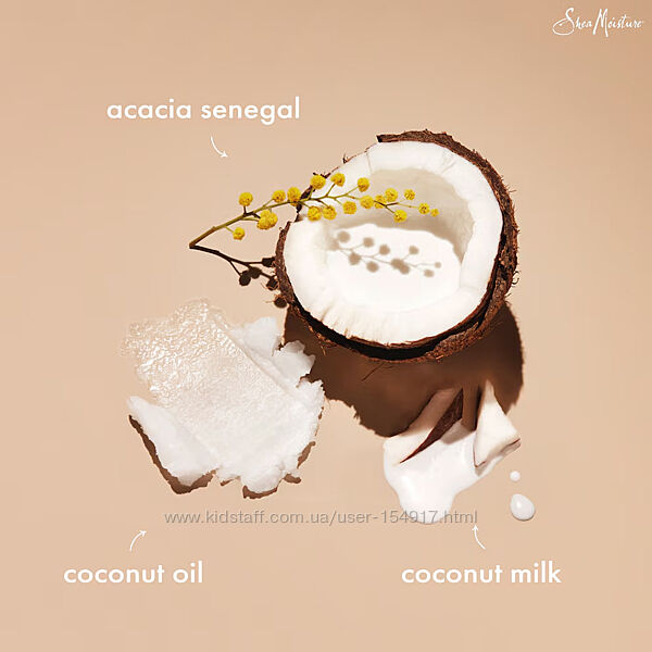 Цей шампунь, створений на основі поживної суміші із 100% кокосової олії першого віджиму, кремоподібного кокосового молока, акації сенегальської та олії ши, придбаної на основі принципів справедливої торгівлі, забезпечує зволоження, слухняність та блиск. Огортає волосся легким прибережним кокосовим бризом. Підходить для всіх типів волосся, збереже колір фарбованого волосся. Не містить сульфатів. Без парабенів. Без фталатів. Без мінеральної олії.