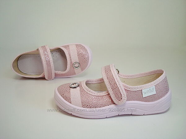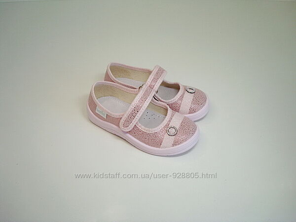 - колір рожевий з вкрапленнями блиску, рожева підошва, кругла брошка може бути сбоку і посередині