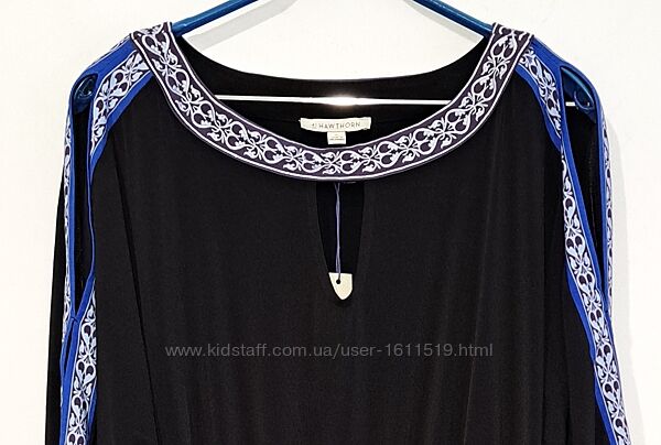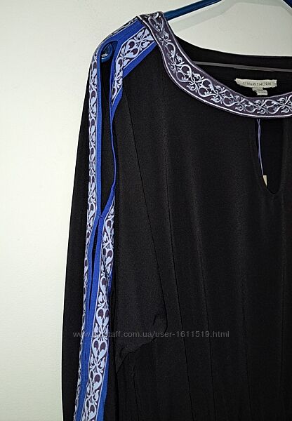 Сукня від американського бренду 41 Hawthorn. На горловині вишивка, на рукавах та подолі принт. На талії резинка. На рукавах по зовнішньому шву розрізи. Тканина м´яка, добре тягнеться.(10076)